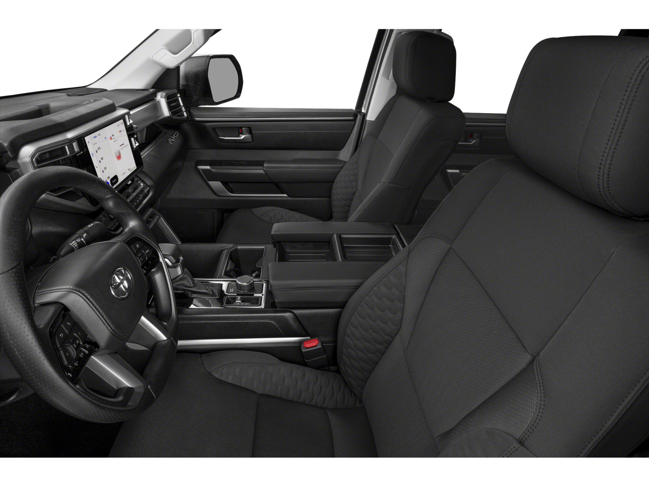 Stepping inside, you'll be greeted by a spacious and well-appointed cabin. The Tundra SR5 comes equipped with a premium audio system, Apple CarPlay and Android Auto integration, and a suite of advanced safety technologies like automatic high-beam headlights and a rearview camera. The comfortable front bucket seats and available power-adjustable driver's seat ensure you'll enjoy every mile behind the wheel.