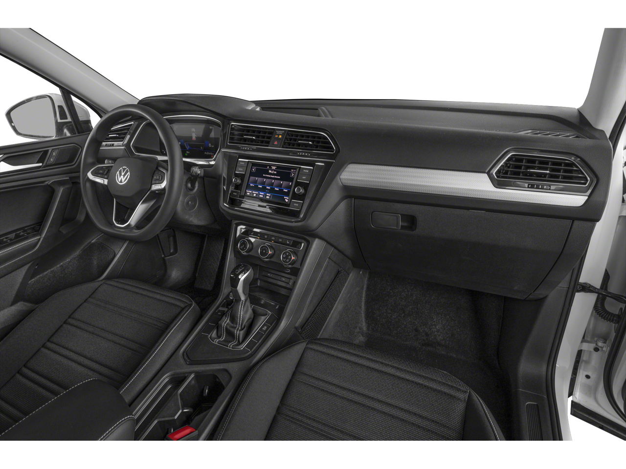Step inside and you'll be greeted by a spacious and well-appointed interior, featuring a Composition Color AM/FM radio, air conditioning, power windows, and remote keyless entry. The Tiguan also boasts a suite of advanced safety features, including Forward Collision Warning with Autonomous Emergency Braking, Electronic Stability Control, and a Rear View Camera.